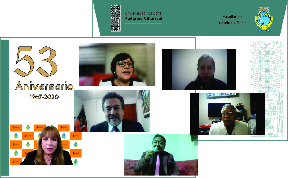 Igualmente; la doctora Regina Medina Espinoza, decana de la FTM y el licenciado Carlos S谩nchez Rafael, decano nacional del Colegio de Tecn贸logos M茅dicos del Per煤, participaron en esta celebraci贸n virtual.