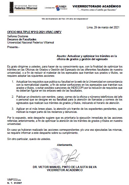 Cartas de felicitación por el 41° aniversario de la facultad: