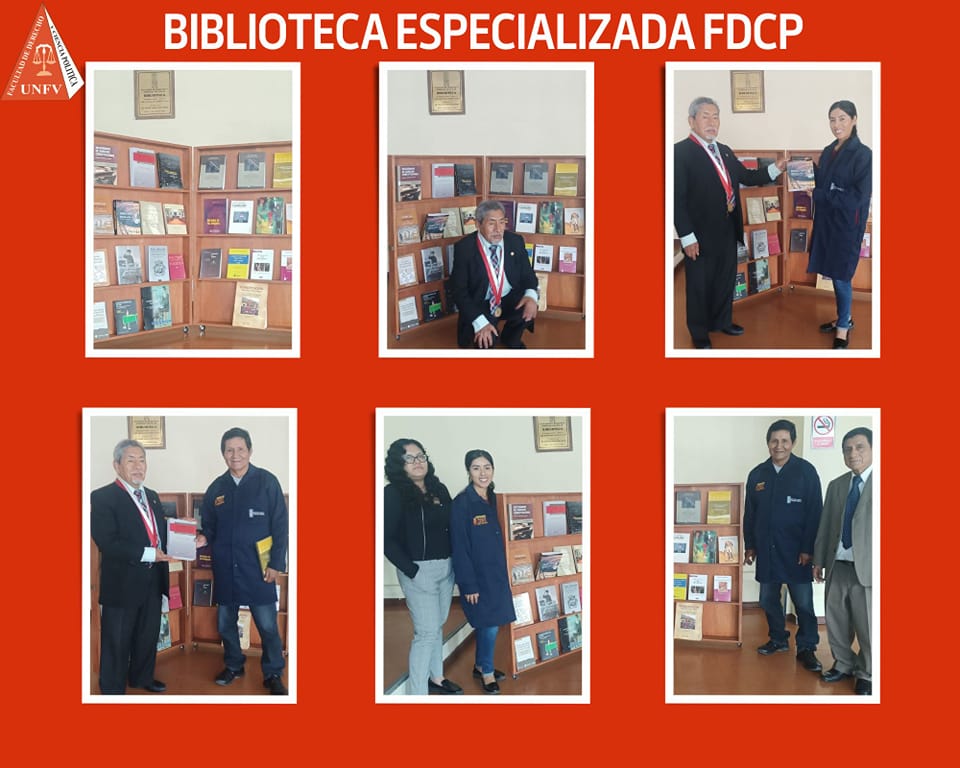 Realizándose en la Sala de Lectura, la presentación de los libros. Contándose con la presencia del Doctor Juan Abraham Ramos Suyo, Decano de la FDCP, la bibliotecaria Betsy Melchor, el técnico administrativo Sr. Angel Huaman, la responsable de Comunicaciones la Srta. Pamela zarate y el jefe de la Oficina de Administración, el licenciado Ciro Minaya.