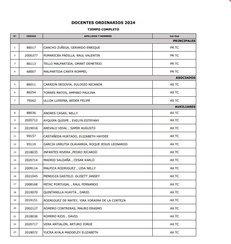 Docentes Tiempo Completo 2024