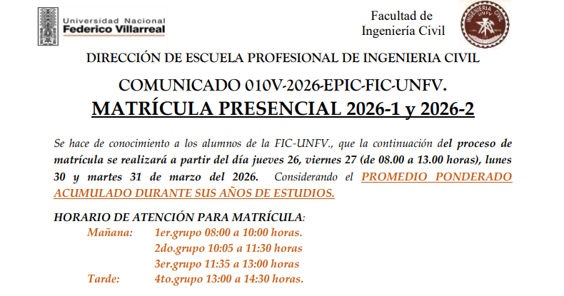 C10-2026: Matricula Presencial 2026