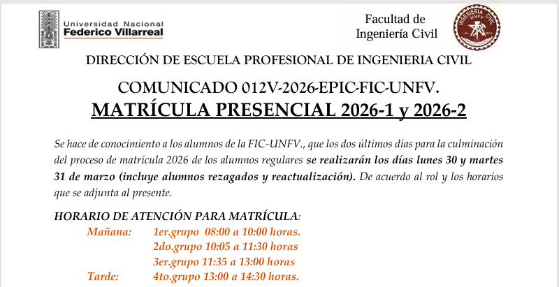 C12: Matricula Presencial 2026-1 y 2026-2