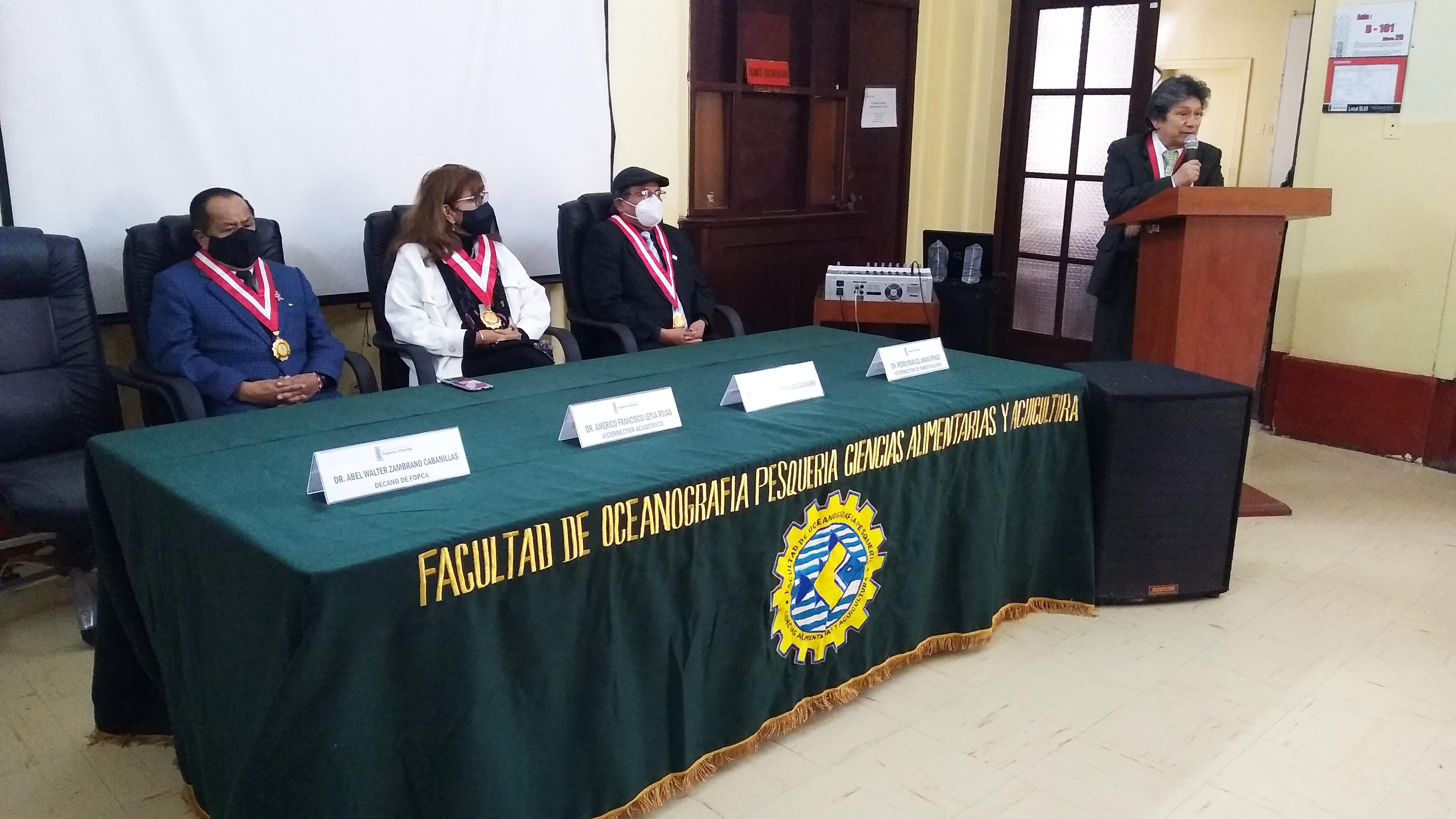 Nuestro señor decano Dr. Abel Walter Zambrano Cabanillas inaugurando la ceremonia de imposición de medallas a los docentes de nuestra facultad. |