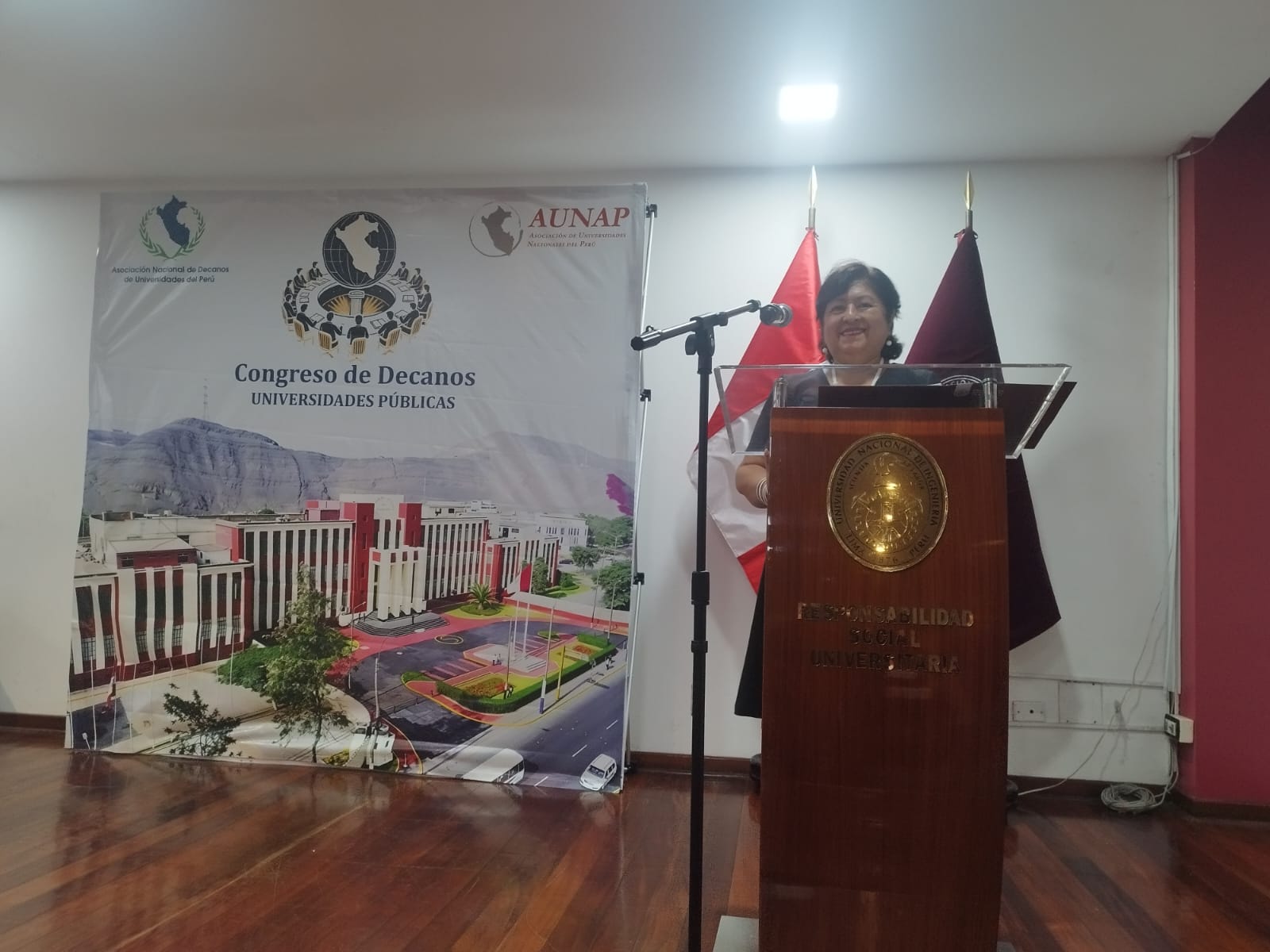 La representación estuvo a cargo de nuestra Decana Dra. Gloria Esperanza Cruz Gonzales, quien destacó la importancia de fortalecer los lazos entre las instituciones académicas para enfrentar los retos del entorno educativo actual. En su intervención, hizo un llamado a la innovación pedagógica y a la implementación de nuevas tecnologías para mejorar la calidad de la enseñanza y el aprendizaje en todas las disciplinas.